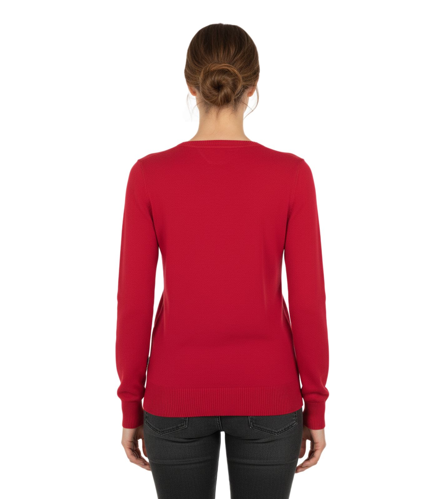 Stylischer Damen Strick-Pullover mit V-Ausschnitt Premium-Baumwolle 133-002 Rot