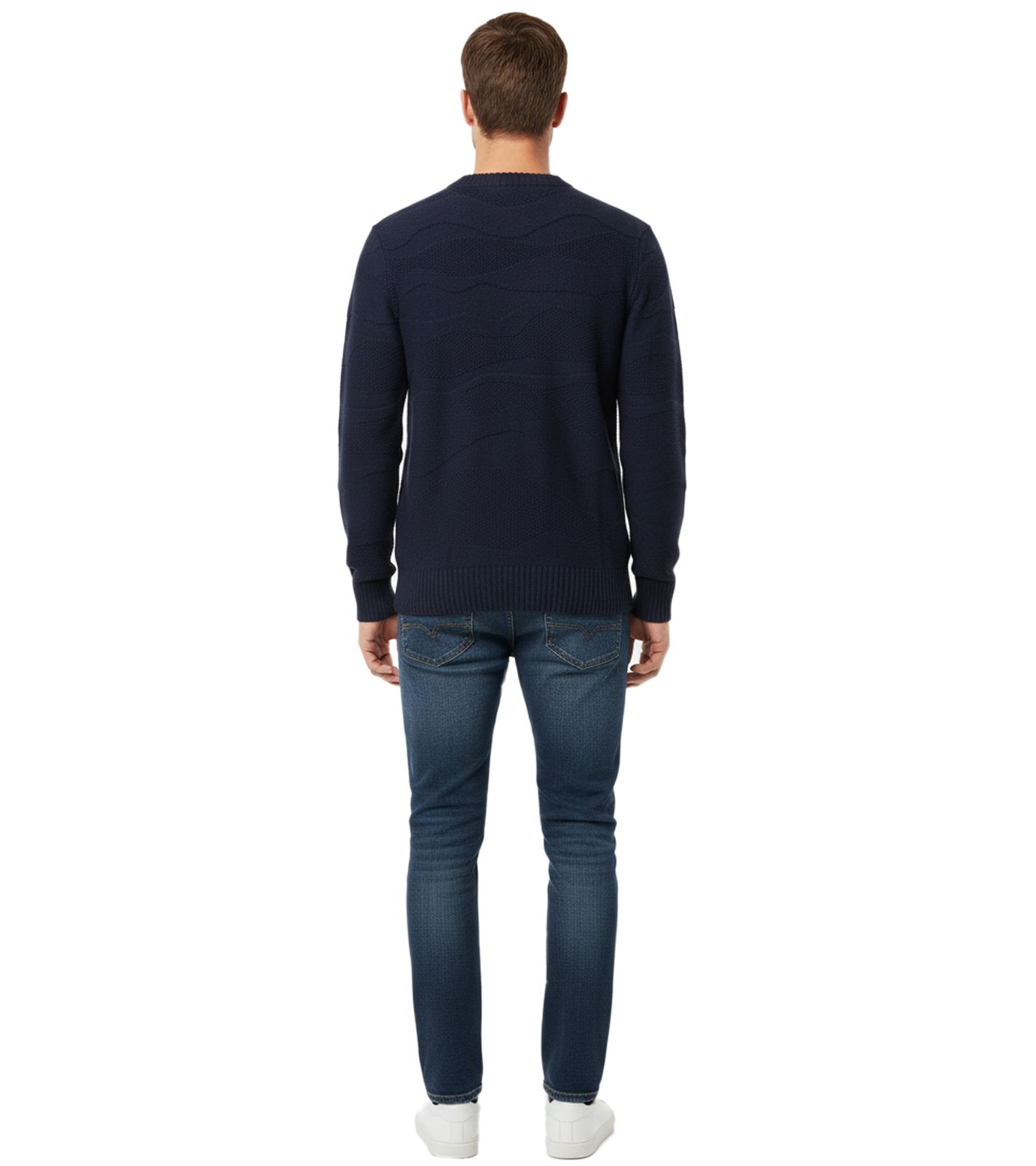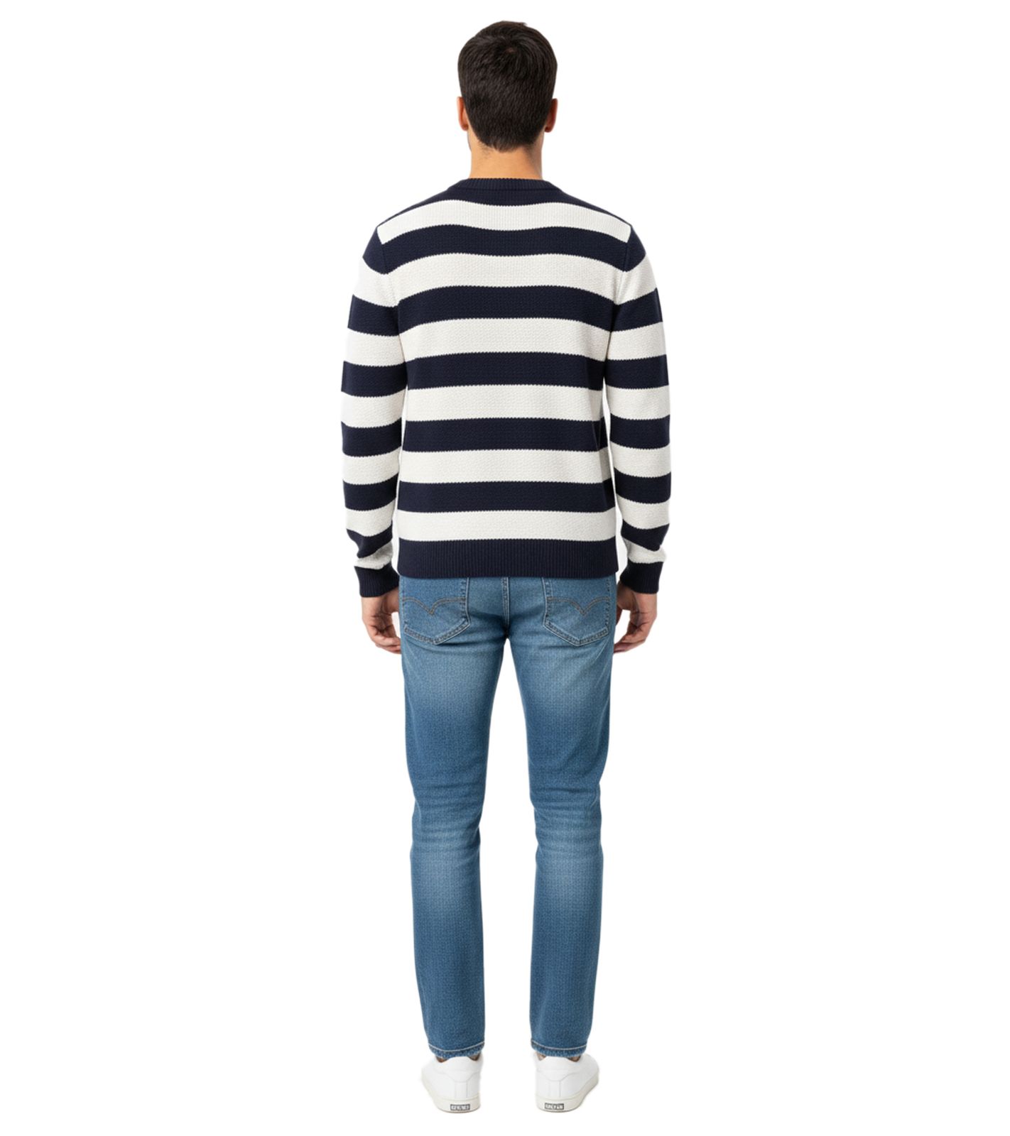 Stylischer ESPRIT Herren Strick-Pullover mit Streifen oder Wellenmuster Rundhals-Sweater Baumwoll-Pullover Dunkelblau/Weiß, Grau oder Blau