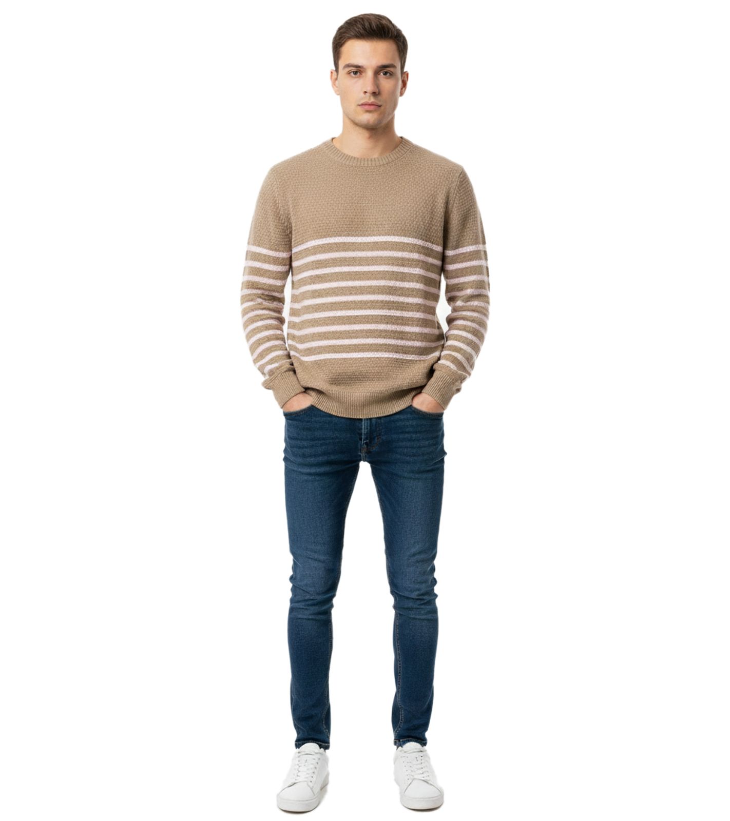 Stylischer ESPRIT Herren Strick-Pullover mit Streifen Rundhals-Sweater Baumwoll-Pullover Khaki/Rosa
