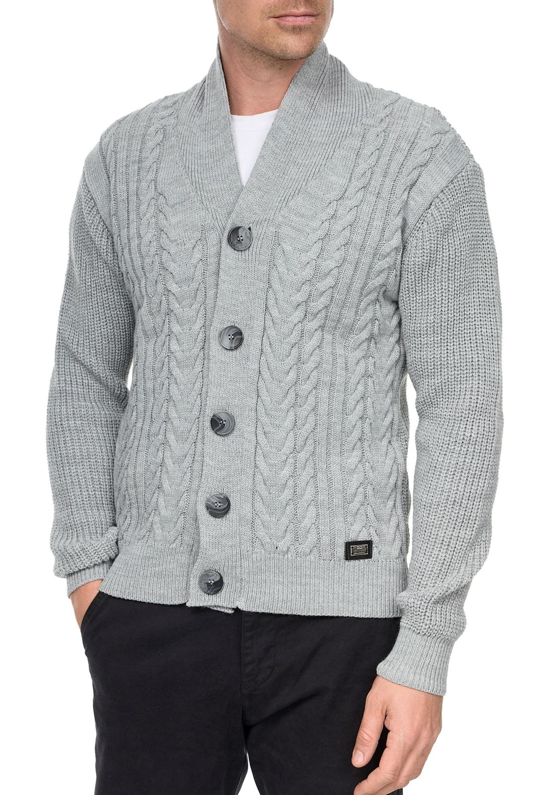 Stylischer Herren Cardigan mit Knopfleiste und Stehkragen Strick-Jacke 13421 Grau