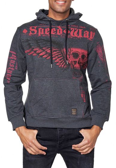 Stylischer Kapuzen-Sweater mit trendigen Print Hoodie für Herren Pullover Sweater 19149 Anthrazit