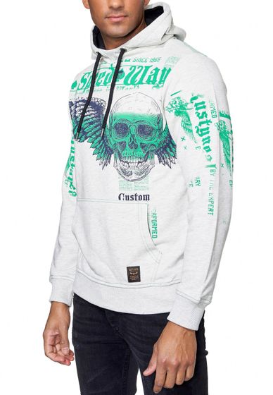 Stylischer Kapuzen-Sweater mit trendigen Print Hoodie für Herren Pullover Sweater 19149 Grau