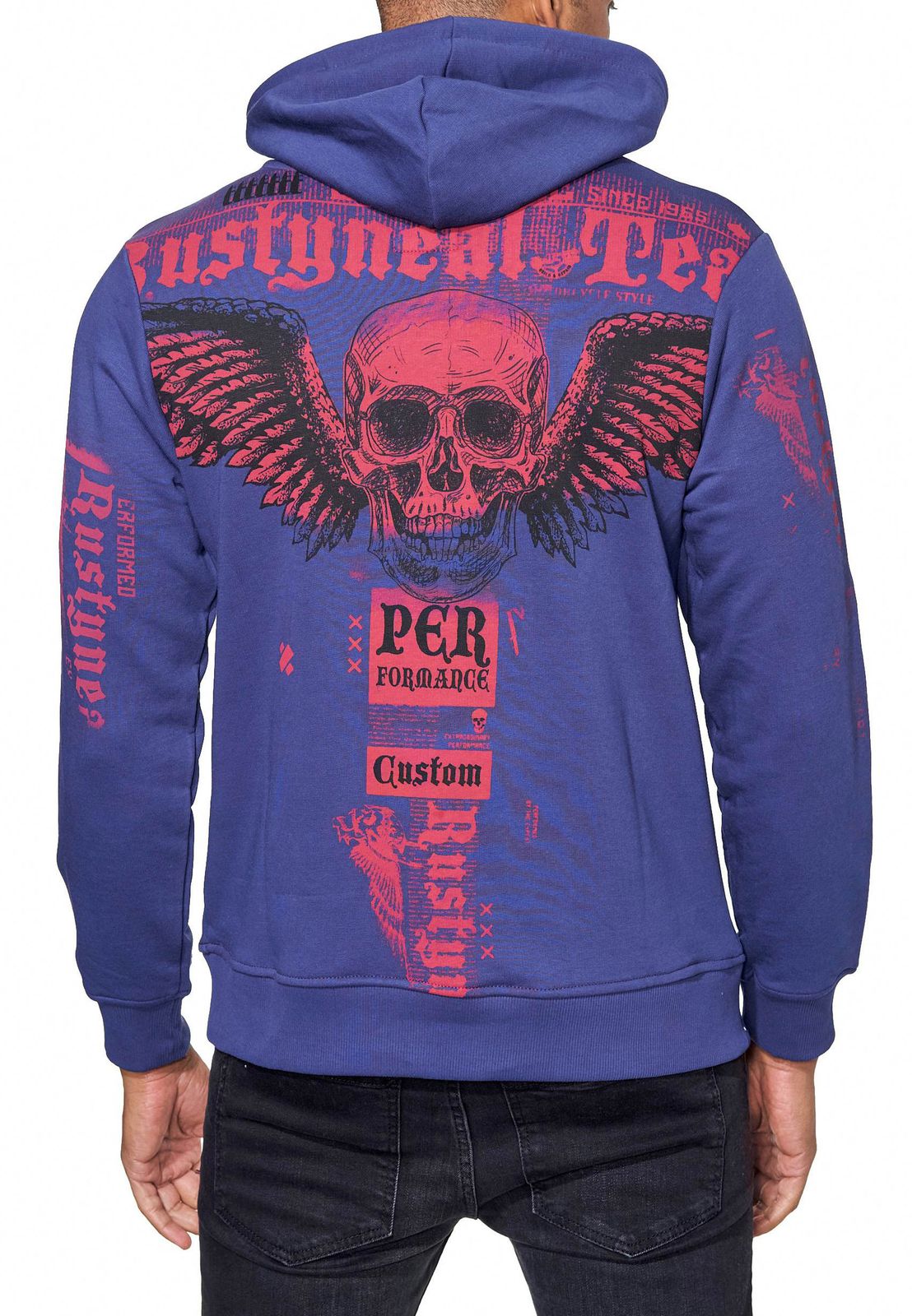 Stylischer Kapuzen-Sweater mit trendigen Print Hoodie für Herren Pullover Sweater 19149 Marine-Blau