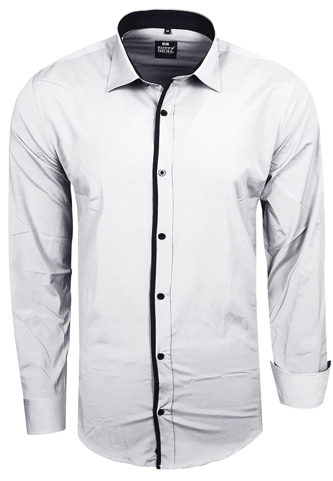 Stylisches Ausgeh-Hemd für Herren Langarm-Shirt mit kontrastfarbigen Detail an Knopfleiste Business-Hemd 70 Grau