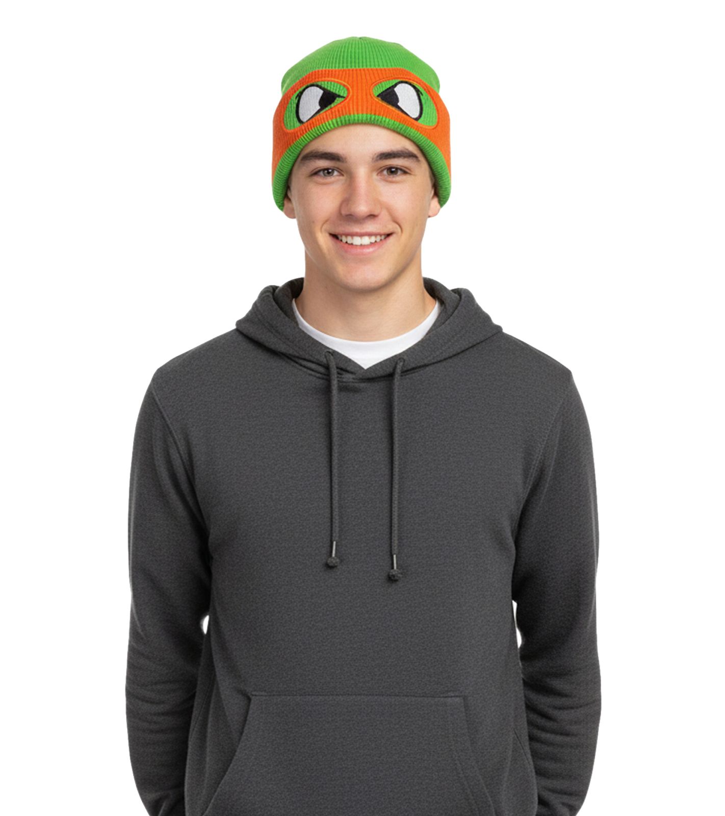 Teenage Mutant Ninja Turtles Beanie Strick-Beanie Fan-Artikel KC07Q Grün im Charakter-Design Raphael (Rot) Donnie (Violett) Michelangelo (Orange)