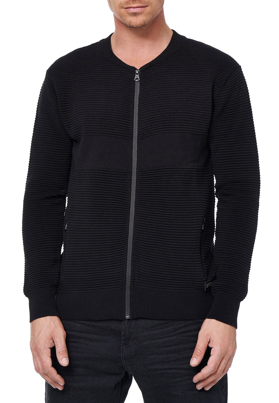 Trendige Herren Strick-Jacke im College-Look Sweat-Jacke Pullover 13337 Schwarz