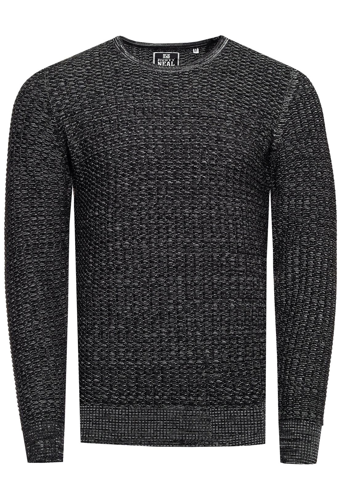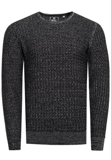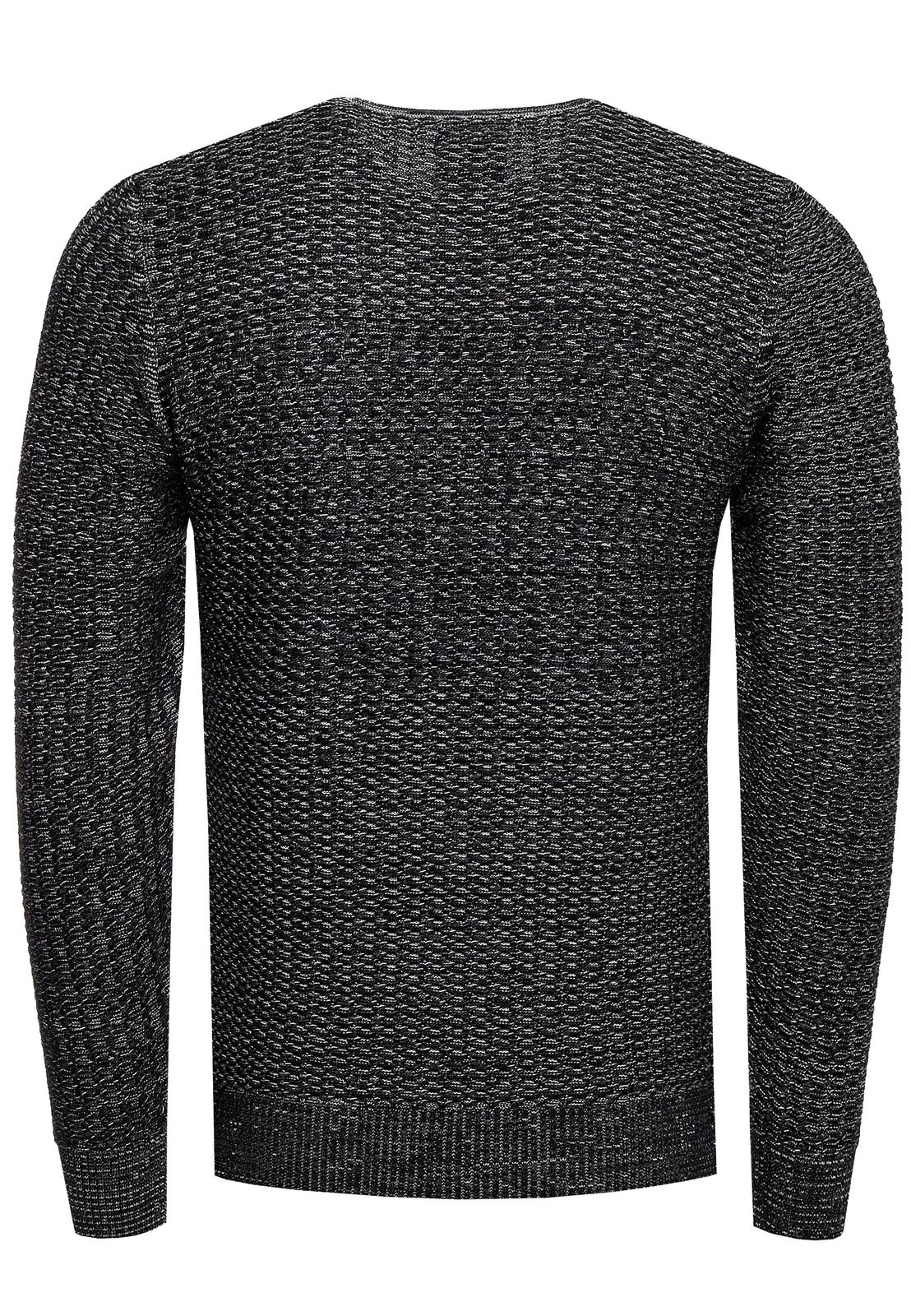 Trendiger Herren Feinstrick-Sweater mit Strukturmuster Rundhals-Pullover 13373 Schwarz