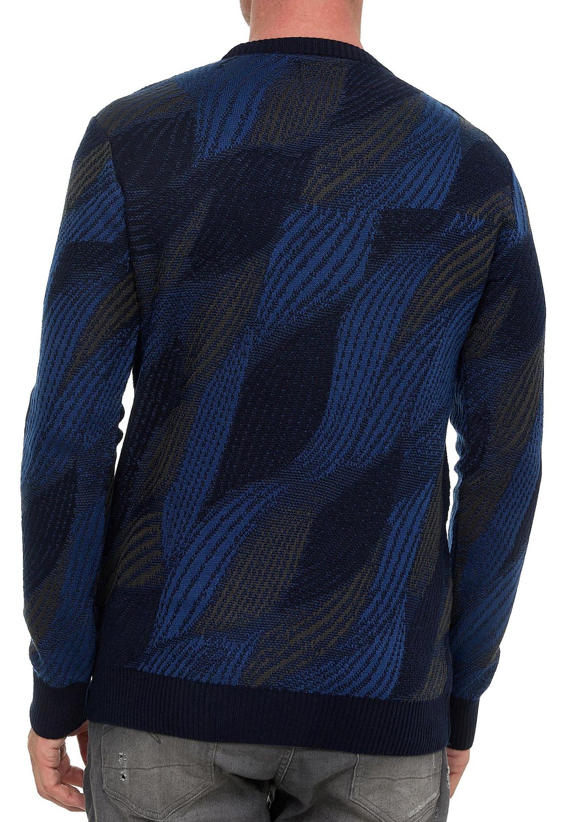 Trendiger Herren Rundhals-Pullover im Wellen-Design Feinstrick-Sweater 13445 Marine