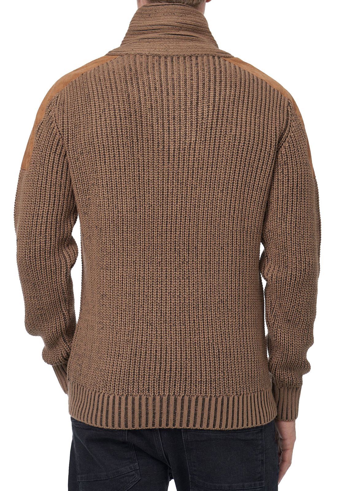 Trendiger Herren Stehkragen-Pullover mit Zopfmuster Grobstrick-Sweater 13391 Camel