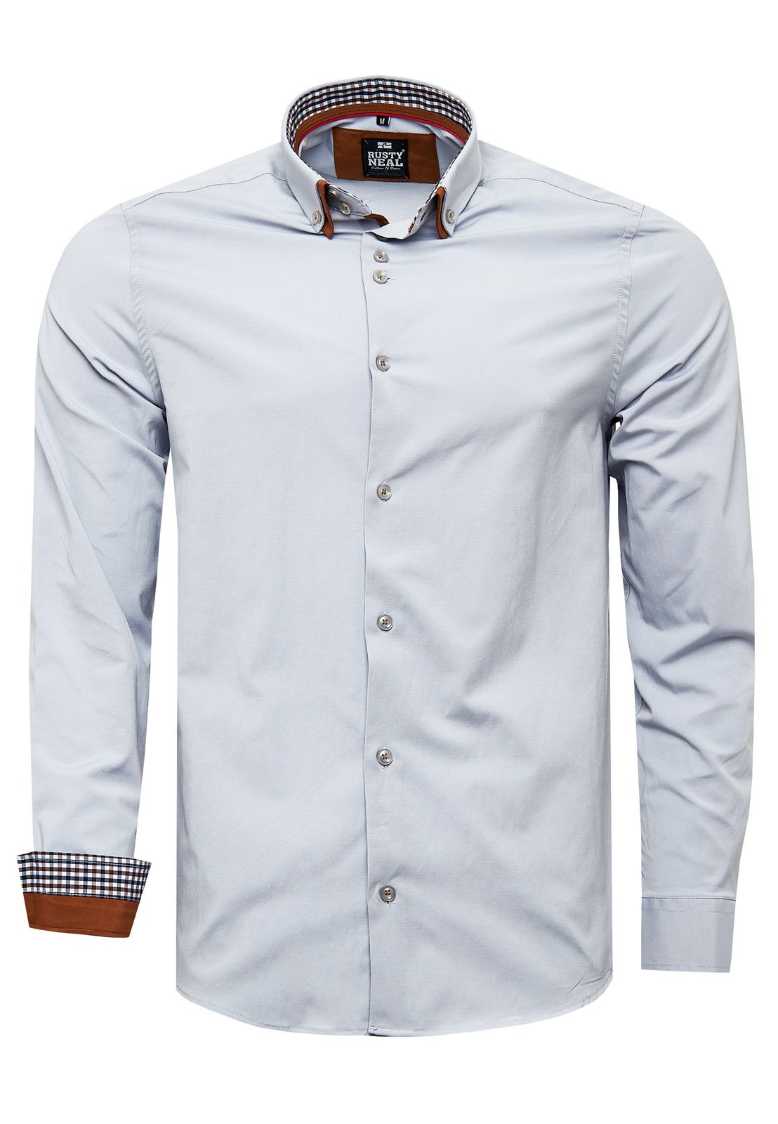 Trendiges Button-Down-Hemd für Herren Freizeit-Shirt Langarm-Hemd 80 Grau