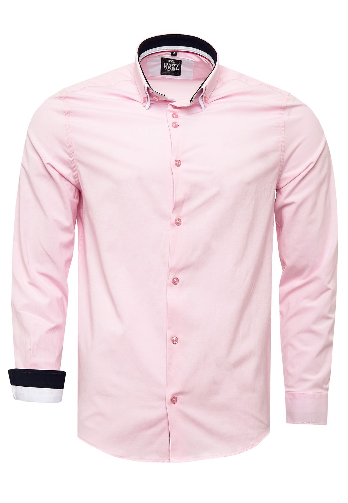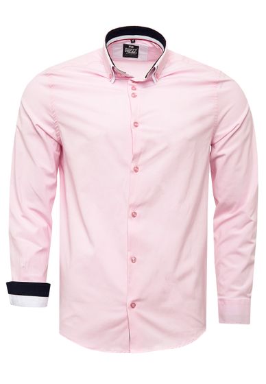 Trendiges Button-Down-Hemd für Herren Freizeit-Shirt Langarm-Hemd 80 Rosa
