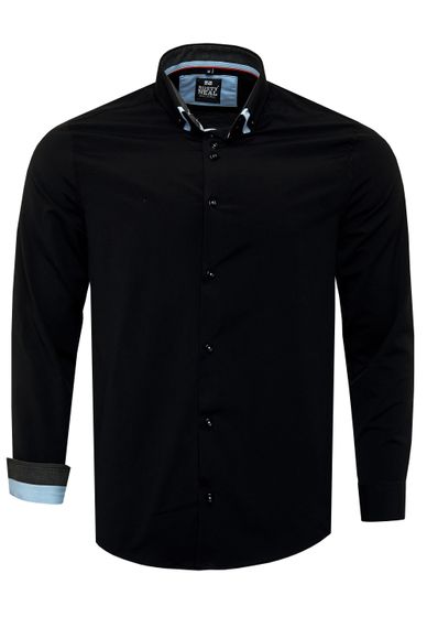 Trendiges Button-Down-Hemd für Herren Freizeit-Shirt Langarm-Hemd 80 Schwarz/Blau