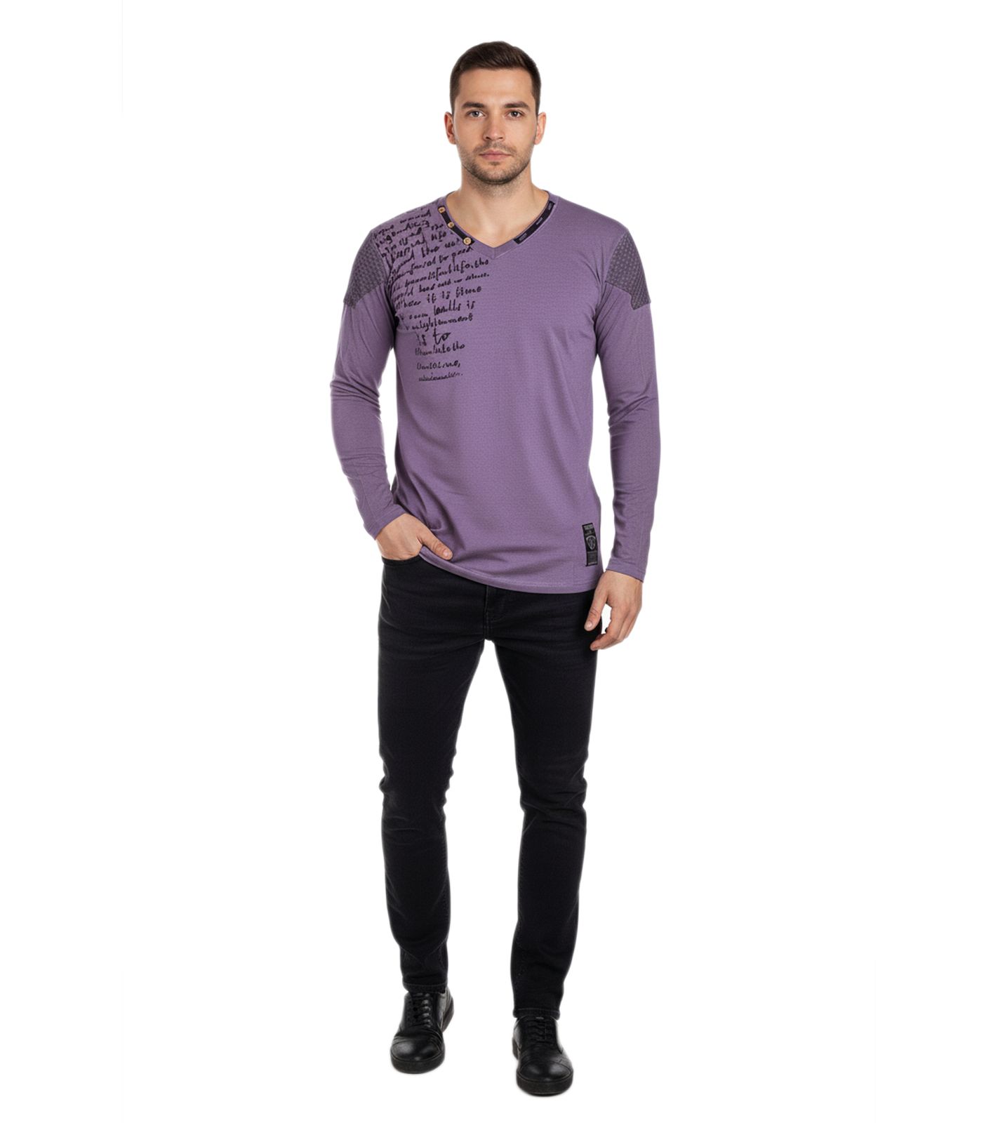 Trendiges Herren Longsleeve V-Ausschnitt Washed Print Design Slim Fit Langarm-Shirt 10117 Violett