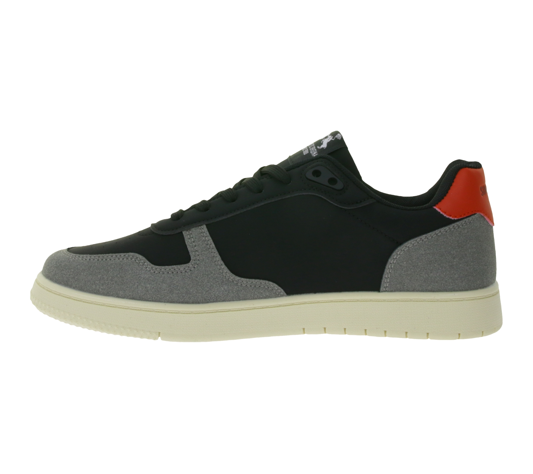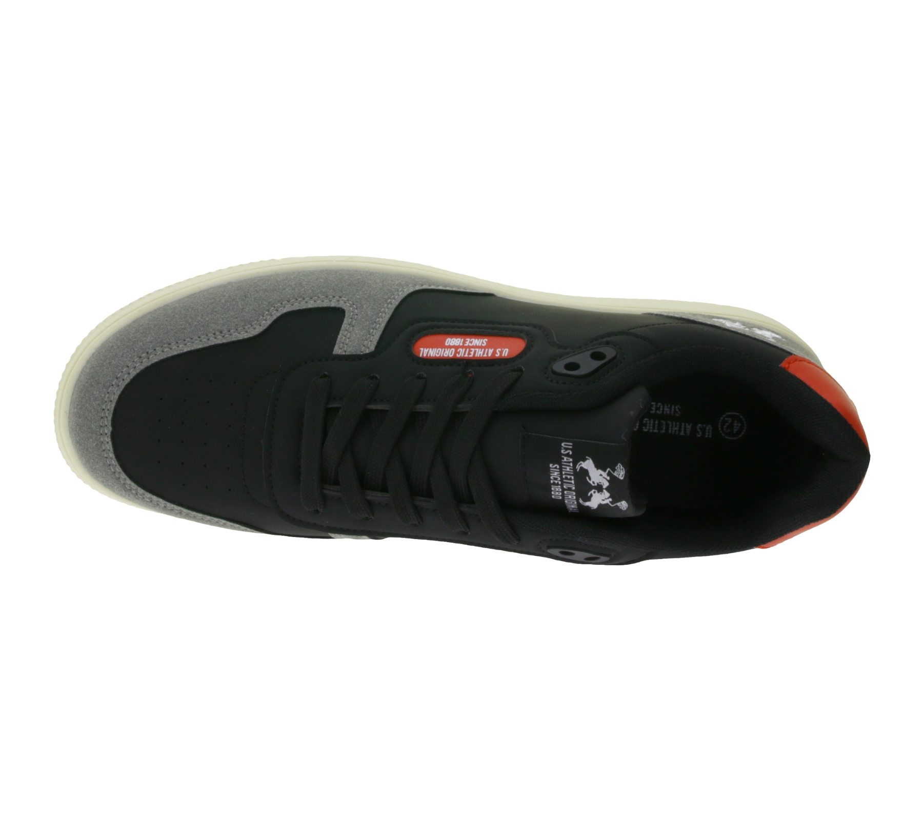 U.S ATHLETIC Basic Herren Alltags-Sneaker mit eingebettetem Schriftzug Schnür-Schuhe mit Stickerei Turnschuhe Schwarz/Rot/Grau
