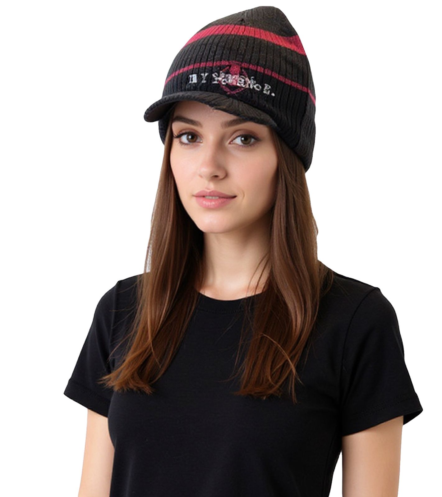 My Chemical Romance Unisex Beanie mit Schriftzug Schirm-Beanie Freizeit-Mütze Schwarz/Pink/Weiß