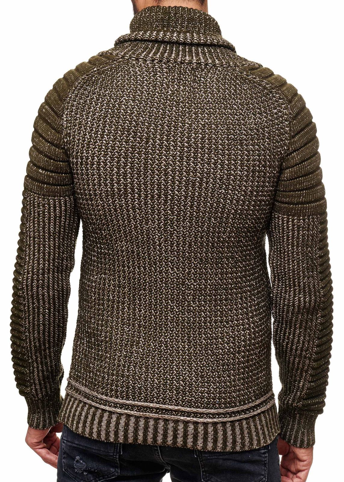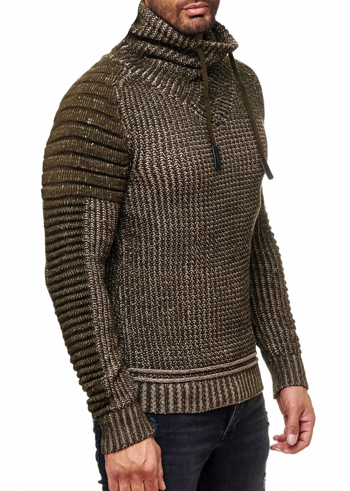 Urbaner Biker Stehkragen-Pullover Grobstrick-Sweater mit Hohem Rollkragen 13293 Khaki