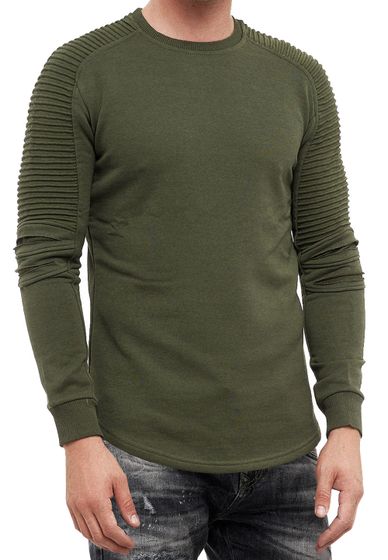 Urbanes Sweatshirt für Herren mit geripptem Ärmeldesign Pullover Sweater 19056 Khaki