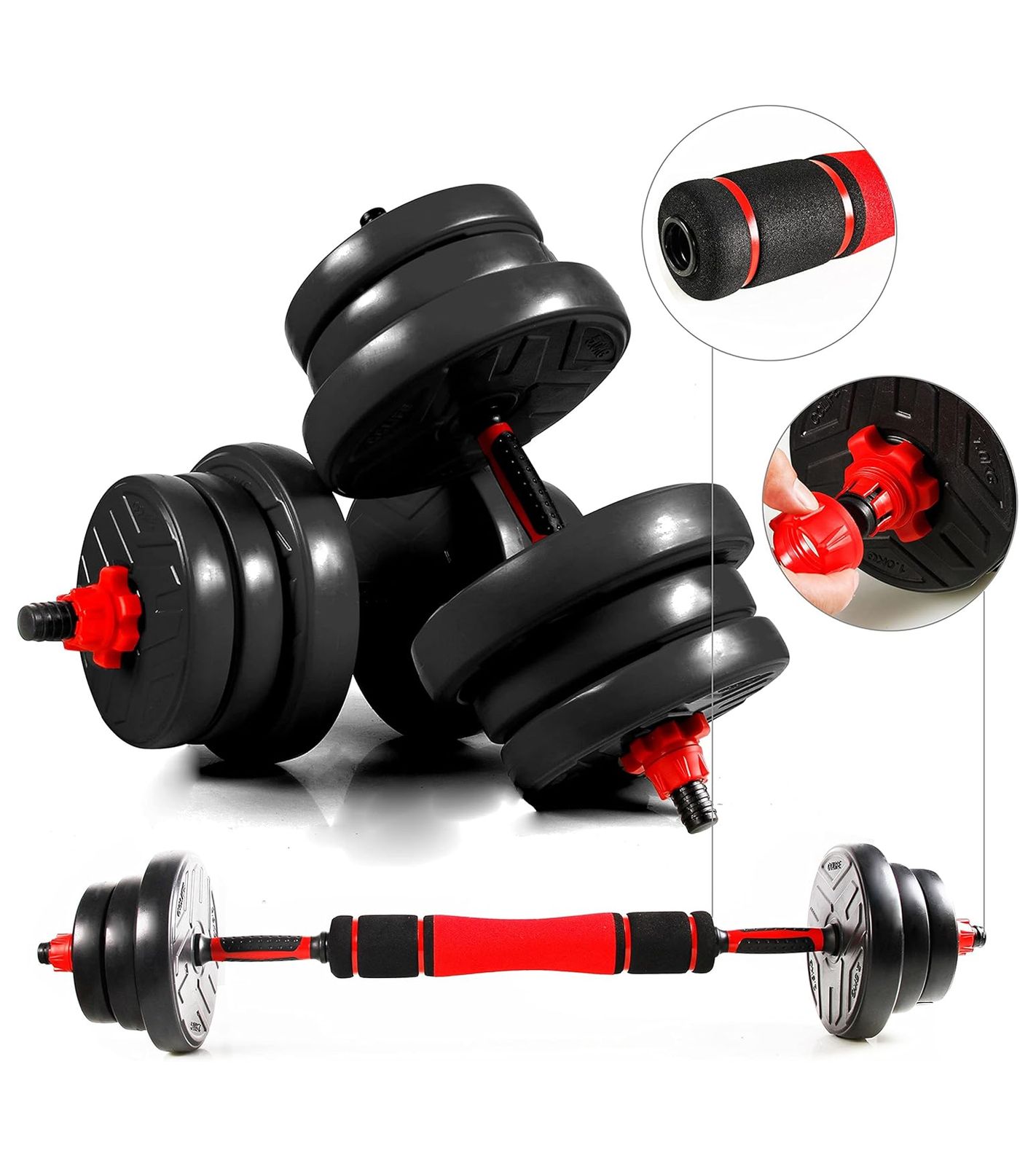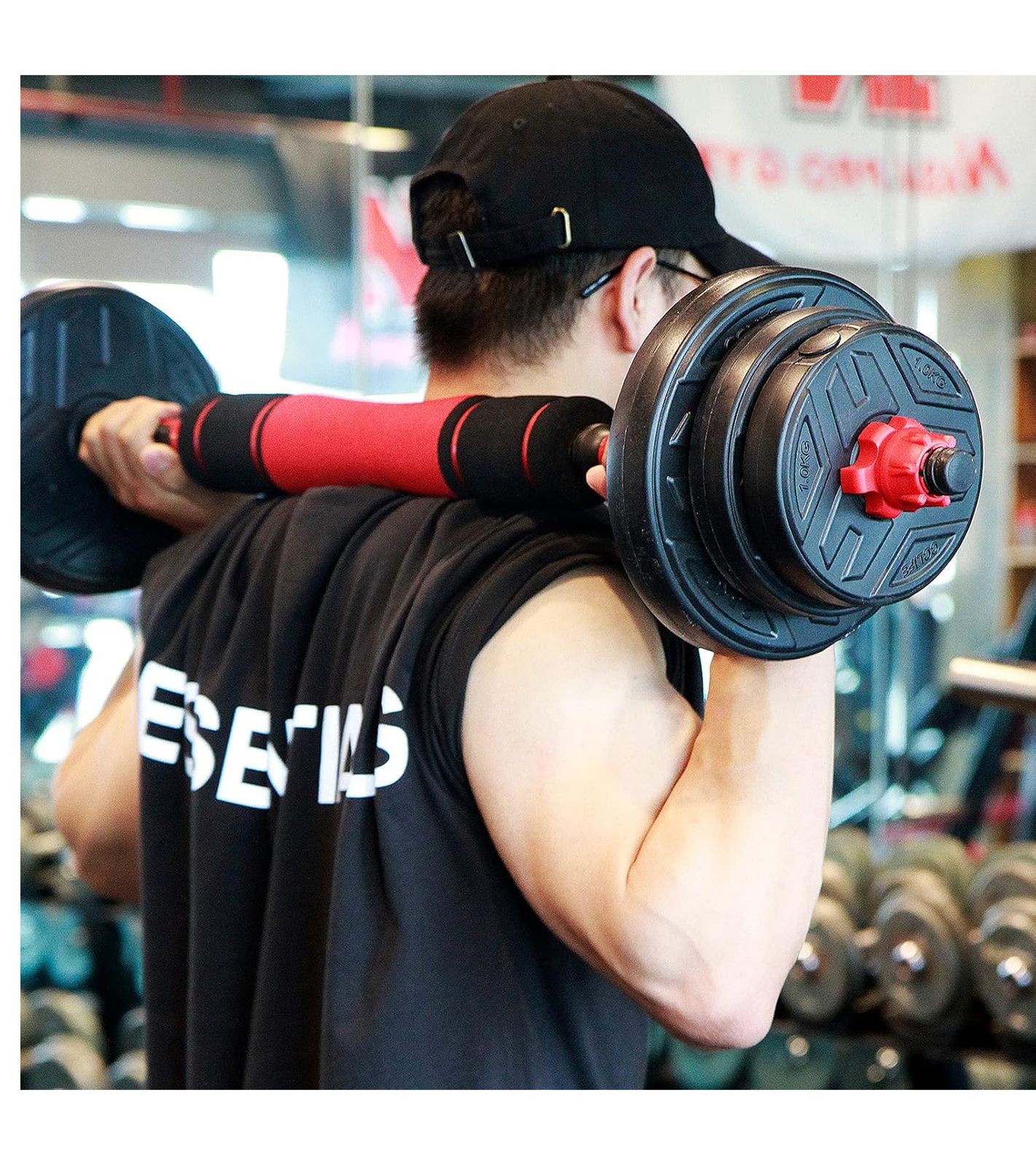 Verstellbare ZERRO SPORT Kurz-Hanteln-Set mit Verbindungsstahlrohr Lang-Hanteln Dumbbell Fitness-Zubehör 20kg Schwarz/Rot