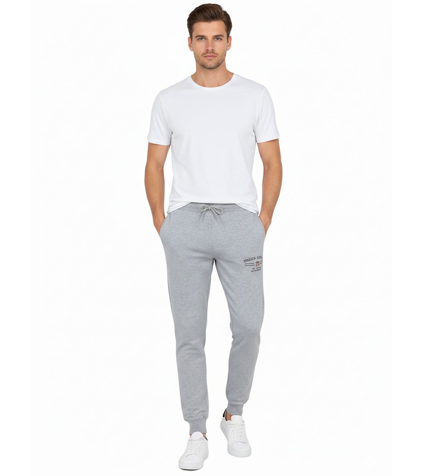 VINSON Herren Jogging-Hose Sweat-Hose mit VINSON-Logo Baumwoll-Hose Sweat Pants Grau