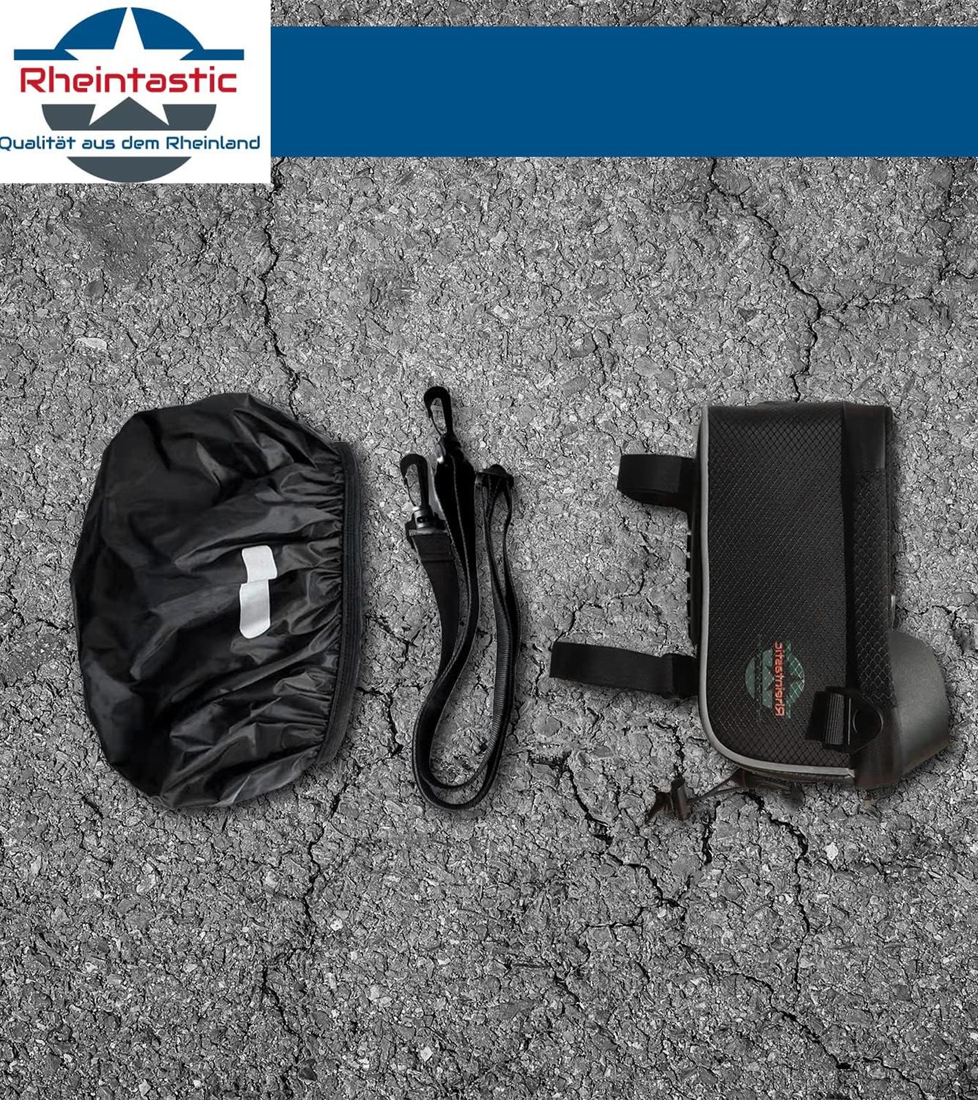 Wasserdichte Rheintastic Rahmentasche mit integriertem Handyfach bis zu 6 Zoll Fahrrad-Tasche inklusive Regenschutzhülle und Umhängegurt Schwarz