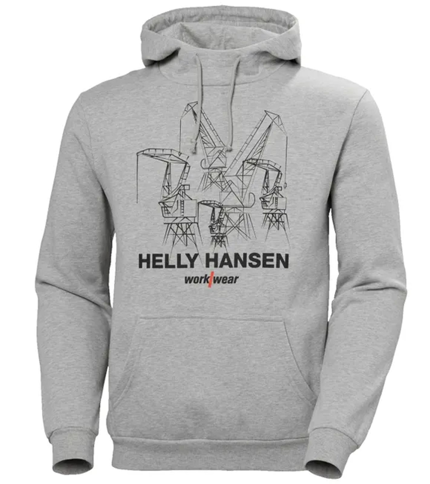 - Modell Grau - Großer Helly Hansen Workwear Front-Print mit markantem Kran-Motiv