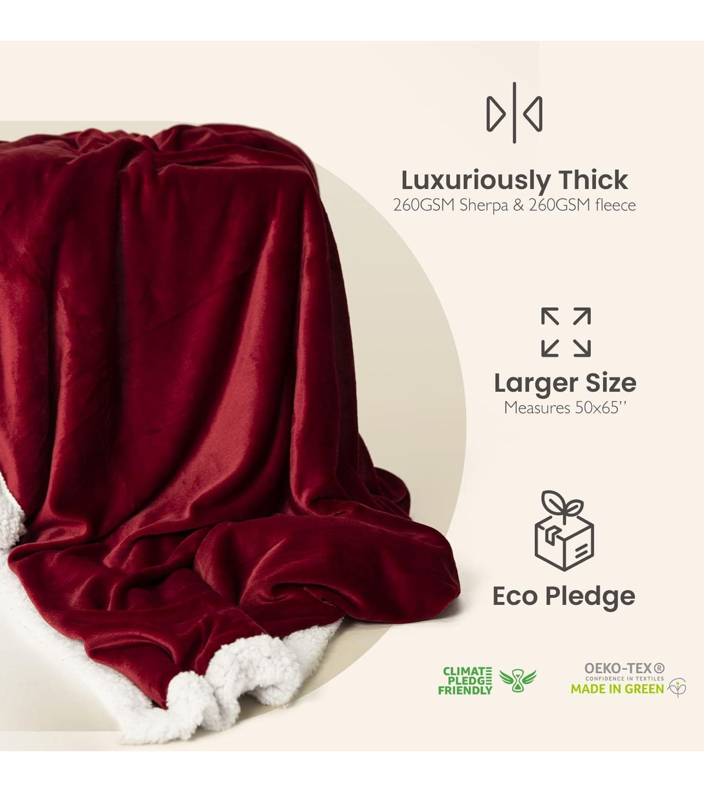 Wendbare Everlasting Comfort Plüsch-Sherpa-Fleecedecke Kuscheldecke 127 x 165 cm Blau, Schwarz, Weinrot und Schnee-Weiß
