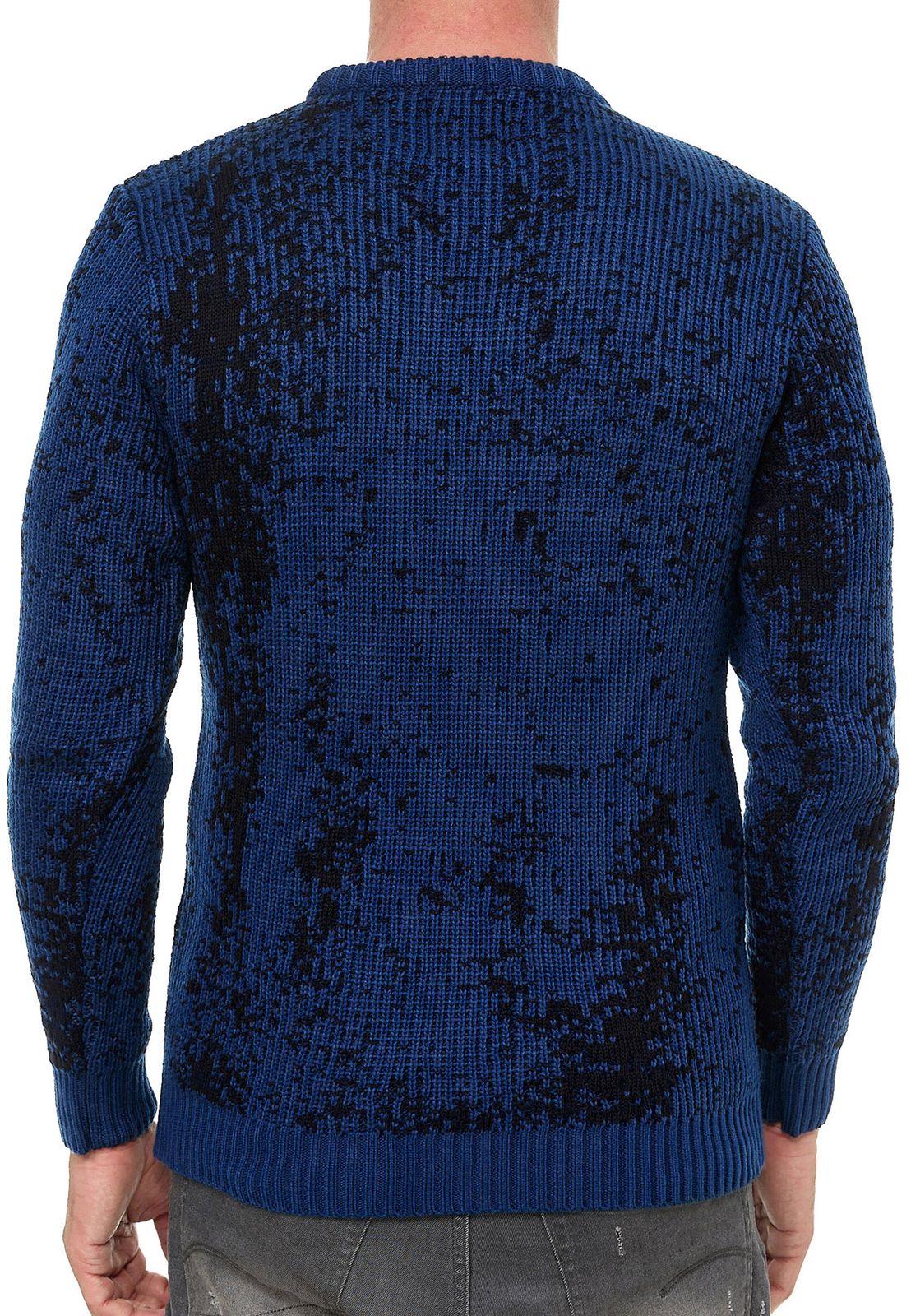 Zeitloser Herren Rundhals-Pullover im Zweifarben-Design Feinstrick-Sweater 13433 Sax-Blau