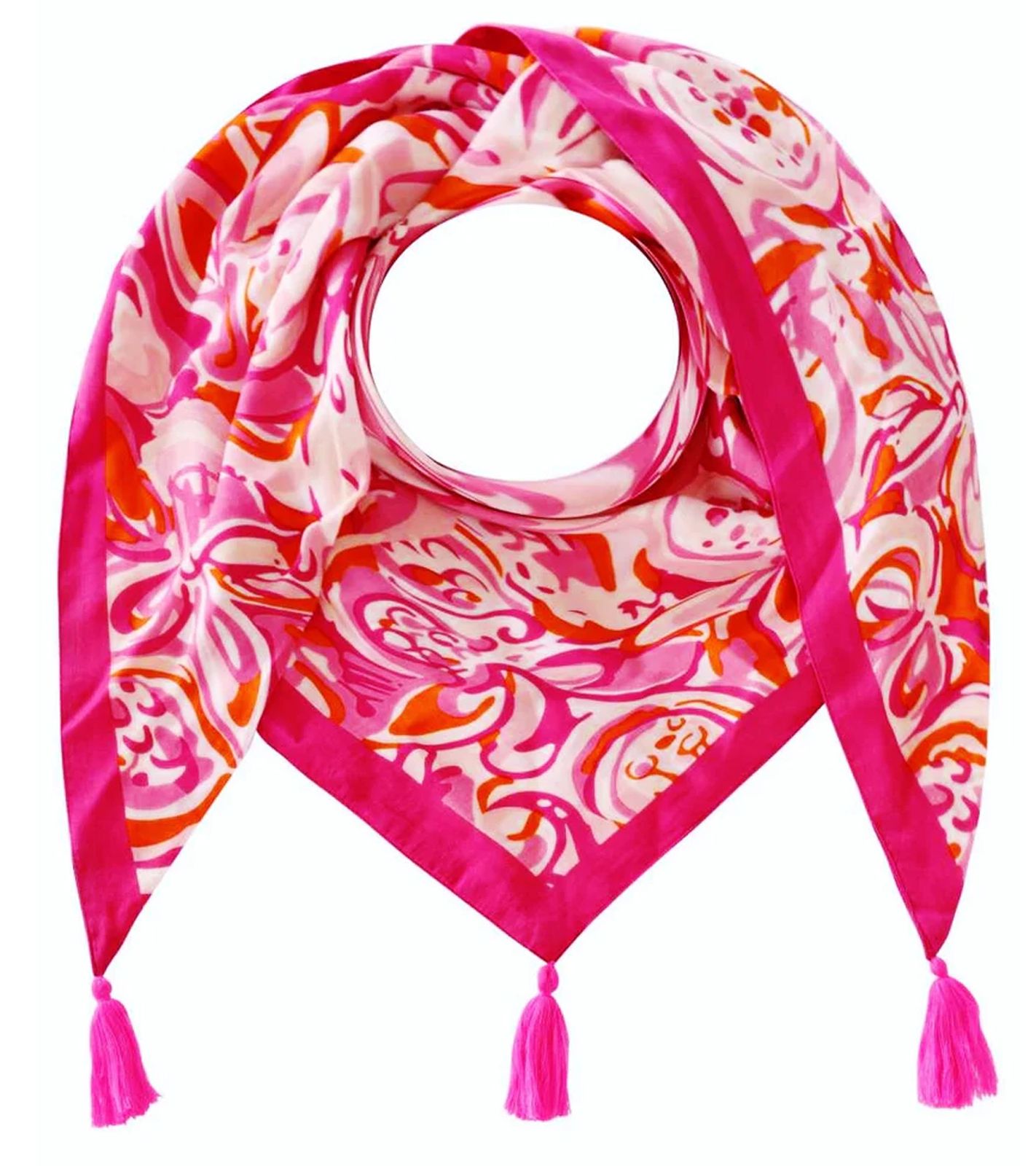 ZWILLINGSHERZ Aquarell Print Dreiecks-Tuch mit Blumen und Ornamenten Mode-Tuch 3014D-0204-13 Pink/Orange/Weiß